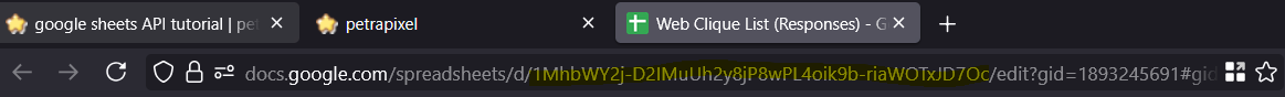 const spreadsheetId = "SPREADSHEET_ID_HERE";