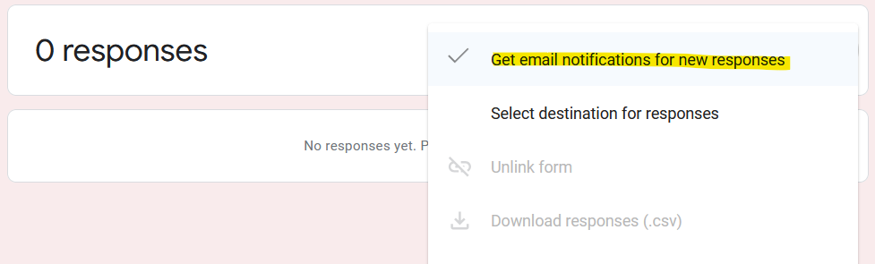 Tip: You can receive an email whenever someone submits a response to the form. (Your Google Form -> Responses -> Menu -> Get email notifications for new responses)